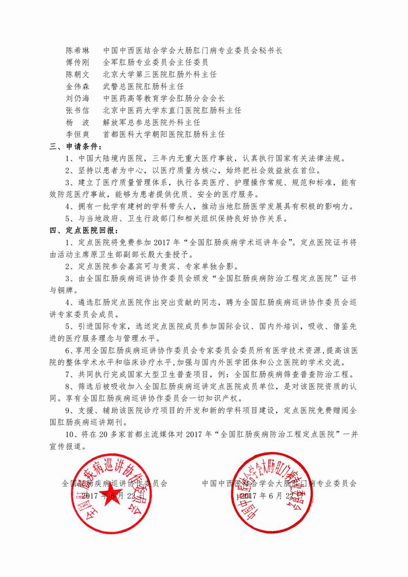 2017年“全国肛肠疾病防治工程定点医院”巡讲活动通知