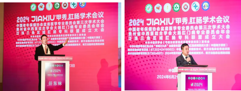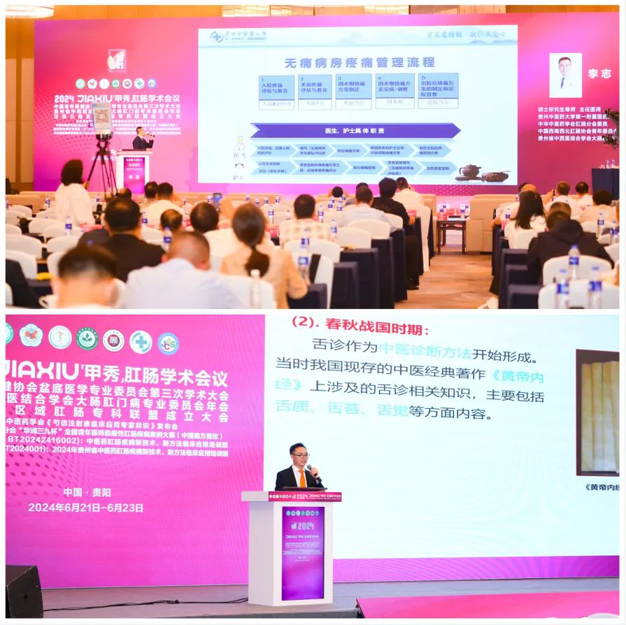 6月21-23日,由中国老年保健协会盆底医学专业委员会、中华中医药学会肛肠分会、泛珠三角区域肛肠专科联盟、贵州省中西医结合学会大肠肛门病专业委员会、贵州省中医药学会肛肠专业委员会、贵州中医药大学第一附属医院主承办,中华胃肠外科杂志、结直肠肛门外科杂志、中国肛肠病外科杂志、Gastroenterology Report.(GR)杂志、贵州中医药大学痔病研究中心、曹波贵州省名中医工作室协办的2024“甲秀”肛肠学术会议暨中国老年保健协会盆底专业委员会第三次学术大会、暨贵州省中西医结合学会大肠肛门病专业委员会年会、2024国家级继教项目中医药肛肠疾病新技术、新方法临床应用培训班(编号:20242416002)、2024年贵州省中医药肛肠疾病新技术、新方法临床应用培训班(编号:BT2024001)在贵州省贵阳市成功召开。本次会议大咖云集,采用线上直播、线下会议的方式为大家呈现了一场内容精彩纷呈的学术盛宴!