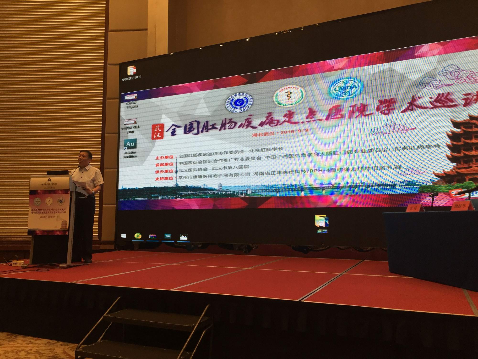 2016年9月9日下午,全国肛肠疾病定点医院学术巡讲活动在武汉市马哥孛罗酒店会议室隆重召开。全国著名的肛肠病专家、中国中西医结合学会大肠肛门病专业委员会主任委员、中山六院副院长任东林教授,中国中西医结合学会大肠肛门病专业委员会副主任委员、北京肛肠学会会长、北京西苑医院肛肠科主任李东冰教授,中国中西医结合学会大肠肛门病专业委员会秘书长、北京肛肠学会副会长、北京市肛肠医院病理科主任陈希琳教授,中国医师协会肛肠专业委员会委员、中华中医药学会肛肠分会理事、江苏省中医院肛肠科邵万金教授,武汉第八医院俞立民主任、徐跃军主任出席了会议。来自市内外的100余位医务人员参会,共同交流肛肠疾病新进展。