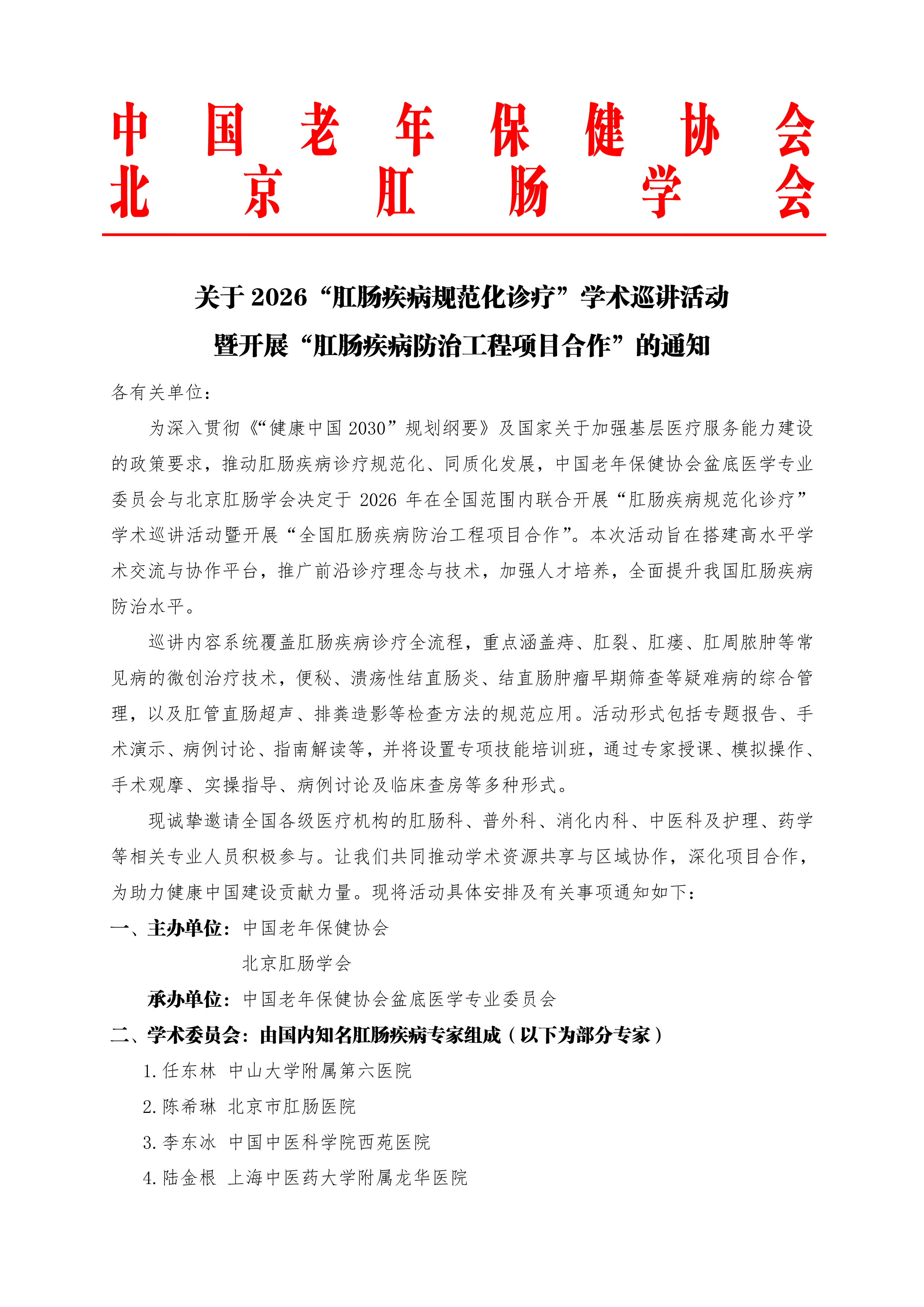 中国老年保健协会盆底医学专业委员会 全国肛肠疾病巡讲协作委员会
