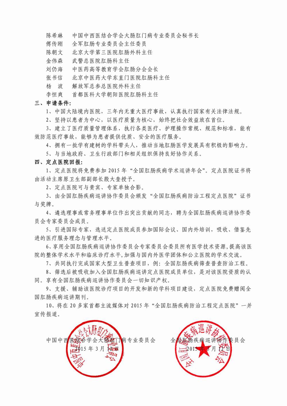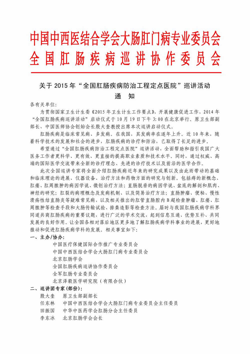 关于开展2015年“全国肛肠疾病定点医院巡讲”活动通知