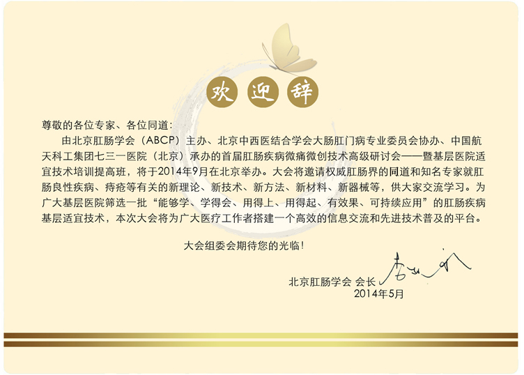 为不断提升我国肛肠专业的诊疗水平,促进肛肠疾病微痛微创技术的发展及临床推广应用。同时,为贯彻落实 “十二五”卫生扶贫精神及国务院办公厅制定的加强乡村医生队伍建设的精神,为广大基层医院筛选一批“能够学、学得会、用得上、用得起、有效果、可持续应用”的肛肠疾病基层适宜技术,本次大会将为广大医疗工作者搭建一个高效的信息交流和先进技术普及的平台。由北京肛肠学会主办,北京中西医结合学会大肠肛门病专业委员会协办的首届微痛微创技术高级研讨会—暨基层医院适宜技术培训提高班将于9月在北京召开;现将会议相关事宜通知如下: